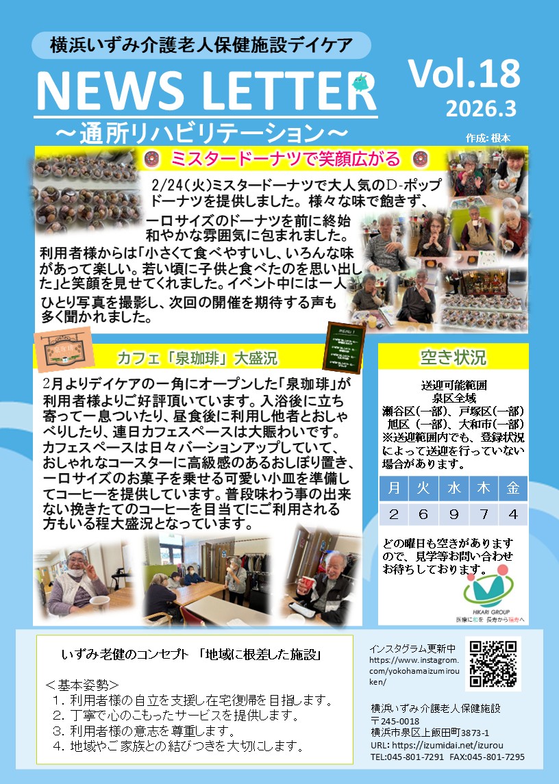 ご利用者様・ご家族様に当広報誌の趣旨をご説明したところ、撮影にも快くご協力いただき、大変ありがたく感じております。